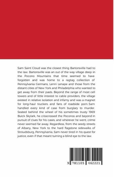Sam Saint Cloud was the closest thing Bartonsville had to the law. Bartonsville was an out of the way village deep in the Pocono Mountains that time seemed to have forgotten and was home to a ragtag collection of Pennsylvania Germans, Lenni Lenape and those from the distant cities of New York and Philadelphia who wanted to get away from their pasts. Beyond the range of most cell towers and of little interest to cable providers, the village existed in relative isolation and infamy and was a magnet for long-haul truckers and fans of roadside porn.Sam handled every kind of case from burglary to murder. Seated behind the wheel of his sometimes trusty 1969 Buick Skylark, he crisscrossed the Poconos and beyondin pursuitof clues for his cases, and wherever he went, crime never seemed far away. Regardless, from the seedy streets of Albany, New York to the hard flagstone sidewalks of Stroudsburg, Pennsylvania, Sam never tired in his quest for justice, even if that meant turning a blind eye to the law.
