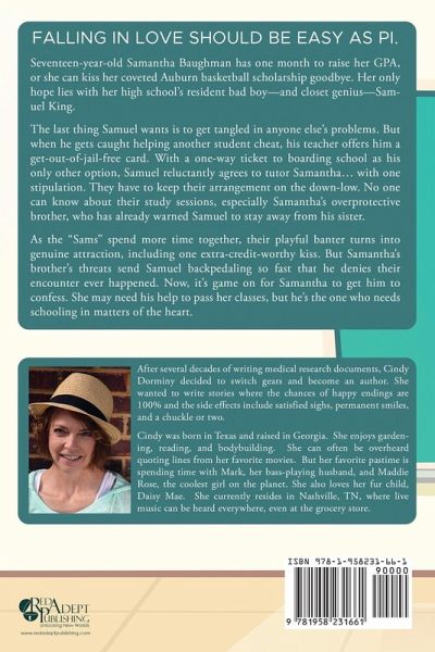 Falling in love should be easy as Pi. Seventeen-year-old Samantha Baughman has one month to raise her GPA, or she can kiss her coveted Auburn basketball scholarship goodbye. Her only hope lies with her high school's resident bad boy-and closet genius-Samuel King. The last thing Samuel wants is to get tangled in anyone else's problems. But when he gets caught helping another student cheat, his teacher offers him a get-out-of-jail-free card. With a one-way ticket to boarding school as his only other option, Samuel reluctantly agrees to tutor Samantha... with one stipulation. They have to keep their arrangement on the down-low. No one can know about their study sessions, especially Samantha's overprotective brother, who has already warned Samuel to stay away from his sister. As the "Sams" spend more time together, their playful banter turns into genuine attraction, including one extra-credit-worthy kiss. But Samantha's brother's threats send Samuel backpedaling so fast that he denies their encounter ever happened. Now, it's game on for Samantha to get him to confess. She may need his help to pass her classes, but he's the one who needs schooling in matters of the heart.