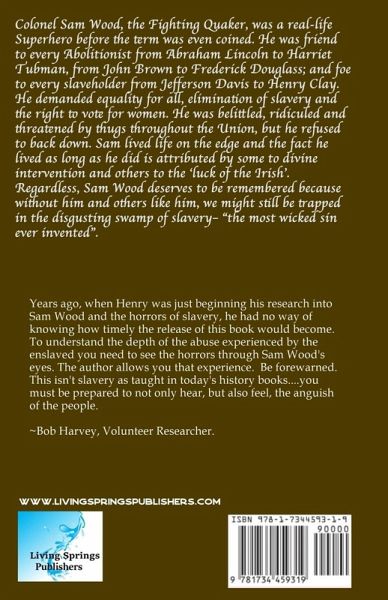 Colonel Sam Wood, the Fighting Quaker, was a real-life Superhero before the term was even coined. He was friend to every Abolitionist from Abraham Lincoln to Harriet Tubman; from John Brown to Frederick Douglass and foe to every slaveholder from Jefferson Davis to Henry Clay He demanded equality for all, elimination of slavery and the right to vote for women. He was belittled, ridiculed and threatened by thugs throughout the Union, but he refused to back down. Sam lived life on the edge and the fact he lived as long as he did is attributed by some to divine intervention and others to the 'luck of the Irish'. Regardless, Sam Wood deserves to be remembered because without him and others like him, we might still be trapped in the disgusting swamp of slavery- "the most wicked sin ever invented".