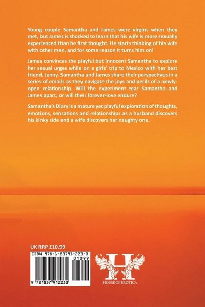 Young couple Samantha and James were virgins when they met, but James is shocked to learn that his wife is more sexually experienced than he first thought. He starts thinking of his wife with other men, and for some reason it turns him on! James convinces the playful but innocent Samantha to explore her sexual urges while on a girls' trip to Mexico with her best friend, Jenny. Samantha and James share their perspectives in a series of emails as they navigate the joys and perils of a newly-open relationship. Will the experiment tear Samantha and James apart, or will their forever-love endure? Samantha's Diary is a mature yet playful exploration of thoughts, emotions, sensations and relationships as a husband discovers his kinky side and a wife discovers her naughty one.