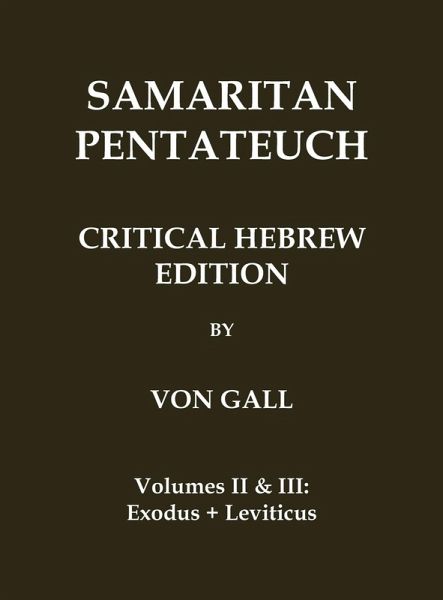 This is a high-quality reprint of Von Gall's critical edition of the Samaritan Torah (Pentateuch): Volumes 2 and 3 - Exodus-Leviticus Contents:The Hebrew text of the Samaritan Torah in the standard square script (not vowel pointed). 3 detailed apparatuses on every page, detailing variants and agreements among the sources, as well as vowel points in the Samaritan manuscripts. A very important work for the study of Textual Criticism, especially with regards to the Samaritan version of the Torah. Volume 1 is available separately with an in-depth introduction in German, explaining the background of the work.