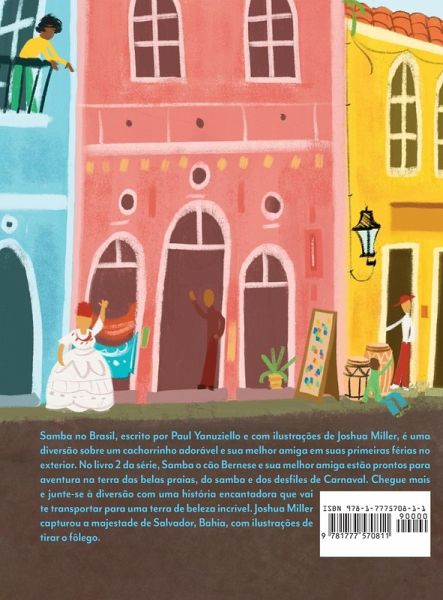 Samba no Brasil, escrito por Paul Yanuziello e com ilustrações de Joshua Miller, é uma diversão sobre um cachorrinho adorável e sua melhor amiga em suas primeiras férias no exterior. No livro 2 da série, Samba o cão Bernese e sua melhor amiga estão prontos para aventura na terra das belas praias, do samba e dos desfiles de Carnaval. Chegue mais e junte-se à diversão com uma história encantadora que vai te transportar para uma terra de beleza incrível. Joshua Miller capturou a majestade de Salvador, Bahia, com ilustrações de tirar o fôlego.