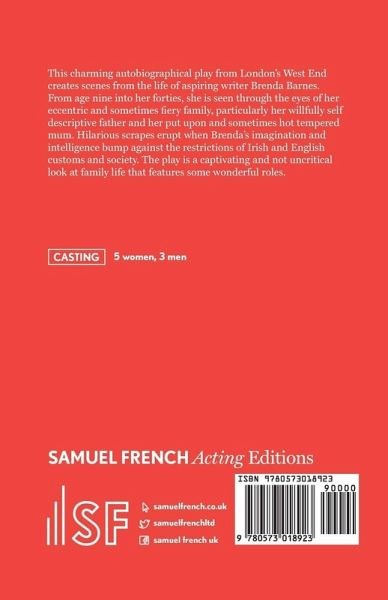 This charming autobiographical play from London's West End creates scenes from the life of aspiring writer Brenda Barnes. From age nine into her forties, she is seen through the eyes of her eccentric and sometimes fiery family, particularly her willfully self descriptive father and her put upon and sometimes hot tempered mum. Hilarious scrapes erupt when Brenda's imagination and intelligence bump against the restrictions of Irish and English customs and society. The play is a captivating and not uncritical look at family life that features some wonderful roles.5 women, 3 men