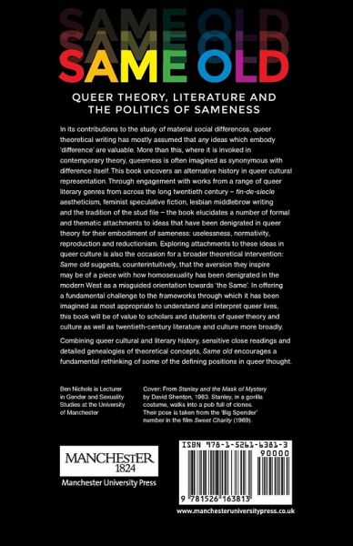 This book provides a new way of understanding queer culture. The frameworks offered by queer theoryâ steeped in philosophical, theoretical and political commitments to 'difference'â have obscured the important investments in 'sameness' that have been central to queer history. Same old dwells on these investments and elucidates their significance. -- .