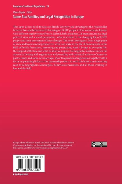 This open access book focuses on family diversity from a legal, demographical and sociological perspective. It investigates what is at stake in the life of homosexuals in the field of family formation, parenting and parenthood, what it brings to everyday life, the support of the law, and what its absence implies. The book shows the paths leading to the adoption of laws while demographic analyses concentrate on the link between registration of same-sex marriages and same-sex parenting with a detailed focus on Spain. The sociological chapters in this book, based upon qualitative surveys in France, Iceland and Italy, underline how the importance of the legal structure influenced the daily life of homosexual families. As such this book is an interesting read to lawyers, demographers, sociologists, behavioural scientists, and all those working in the field.