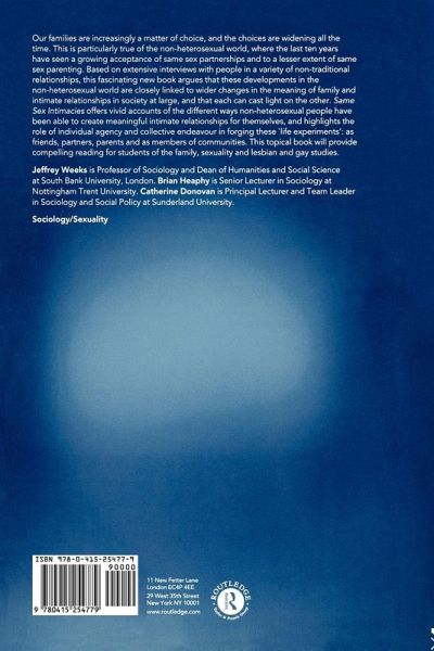 Same Sex Intimacies gives vivid accounts of the different ways non-heterosexual people have been able to create meaningful intimate relationships for themselves, and highlights the role of individual agency and collective endeavour in forging these roles: as friends, partners, parents and as members of communities. This topical book will provide compelling reading for students of the family,sexuality and lesbian and gay studies.