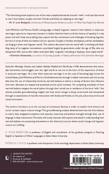 This book shows how the first lesbians to marry in the United States are using or avoiding the word wife at this historic juncture when the definition of marriage is undergoing a shift. It will interest the LGBTQ community and its allies, political activists, feminists, and scholars of sociology, sociolinguistics, linguistic anthropology, and gender.