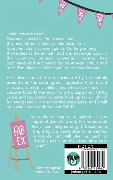 Jamie has to do well. Nervous, uncertain, he knows that this new job is his chance-his ticket to a future he hadn't even imagined. Working among the techies at the annual Food and Beverage Expo in the country's biggest convention centre, he's captivated and enchanted by its energy, colour and buzz. The place is unlike anything he's ever known. He's also captivated and enchanted by the bubbly brunette on the catering stall opposite. Vibrant and vivacious, she too is unlike anyone he's ever known. Despite fatherly warnings from his supervisor Chilly, Jamie and the pretty brunette hook up for a night of fun and passion. In the morning she's gone, and it will be a whole year until the next FaB-Ex. As darkness begins to gather at the edges of Jamie's world, this wonderful, lively and enigmatic girl becomes a bright light to remember in his darkest moments. But will she be back at FaB-Ex again, at the same time next year?