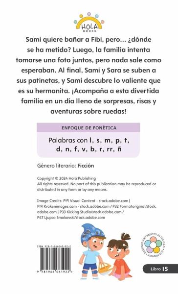 Sami y Sara is a vibrant and decodable Spanish reader designed for early readers in Grade 1 who are building foundational literacy skills. This engaging collection of three short stories follows siblings Sami and Sara and their clever cat, Fibi, as they explore everyday adventures filled with humor, curiosity, and heart. Each story is rich with decodable text and high-frequency vocabulary, carefully aligned to phonics skills appropriate for first-grade students. With repetition, predictable sentence structures, and meaningful context, readers develop fluency, comprehension, and confidence in reading Spanish. Throughout the book, readers will: Search for a missing cat in ¿Dónde está Fibi? Get ready for a perfectly imperfect family photo in La foto familiar Share a fun and heartfelt moment between siblings in Sami y Sara Each story is supported by pre-reading vocabulary practice, comprehension questions, and fun fact sections that extend learning. Ideal for use in classrooms, small groups, or independent reading time, this book fosters a love for reading through relatable characters and everyday adventures.