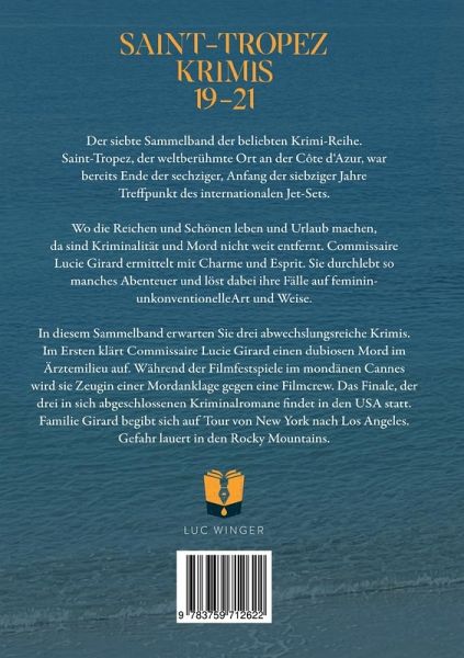 Im siebten Sammelband der beliebten Reihe erwarten Sie drei abwechslungsreiche Krimis. Im Ersten klärt Commissaire Lucie Girard einen dubiosen Mord im Ärztemilieu auf. Während der Filmfestspiele im mondänen Cannes wird sie Zeugin einer Mordanklage gegen eine Filmcrew. Das Finale, der drei in sich abgeschlossenen Kriminalromane findet in den USA statt. Familie Girard begibt sich auf Tour von New York nach Los Angeles. Gefahr lauert in den Rocky Mountains.Mord in Weiß. Schönheitswahn in Saint-Tropez. Der Playboy Christian Richard ist durch einen Badeunfall mit einem Jetski querschnittsgelähmt. Seine Geliebte, die Schönheitschirurgin Docteur Boyer, pflegt ihn. Eines Morgens findet die Haushälterin das Paar ermordet in ihrer Villa. Ein herausfordernder Fall für Commissaire Girard, die nach einer Lebenskrise in ihren Beruf zurückkehrt.Mord auf Zelluloid.Großes Kino in Cannes 1978. Premiere des Kinofilms Das offene Geheimnis, ein Krimi mit dem berühmten Detektiv Fabrice Petit. Während der Uraufführung erfahren die Zuschauer vom Tod des Hauptdarstellers Rene Carriere. Seine Frau, die im Publikum sitzt, glaubt nicht an einen natürlichen Tod. Sie beschuldigt die anwesende Filmcrew des Mordes an ihrem geliebten Mann. Als Gast der Vorführung nimmt sich Commissaire Lucie Girard des Falles an. Obwohl sie auf fremdem Terrain ermittelt.Mord auf Tour.Kein gewöhnlicher Saint-Tropez Krimi. Lucie Girard ist mit ihrer Familie unterwegs auf Tour durch die USA. Sie haben vor, im Land der unbegrenzten Möglichkeiten eine Freiheit zu entdecken und zu genießen, die sie in ihrem südfranzösischen Alltag bisher nicht gefunden haben. Die Reise wird zu einer Entdeckungstour ins ich. Was dabei entsteht? Lesen Sie im neuen Saint-Tropez Krimi.