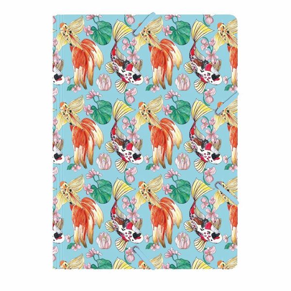 Sammelmappe aus cellophaniertem 350 g/m² Karton und farbig bedruckter Innenseite. Sie ist für A4 Formate geeignet und kann bis 4 cm Höhe befüllt werden. 2 elastische Eckspanner und 3 Innenklappen verschließen den Inhalt sicher.