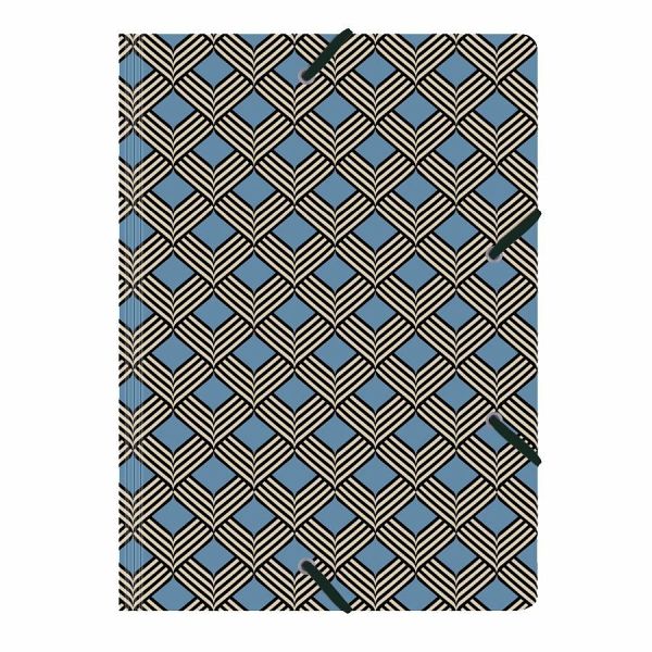 Sammelmappe aus cellophaniertem 350 g/m² Karton und farbig bedruckter Innenseite. Sie ist für A4 Formate geeignet und kann bis 4 cm Höhe befüllt werden. 2 elastische Eckspanner und 3 Innenklappen verschließen den Inhalt sicher.