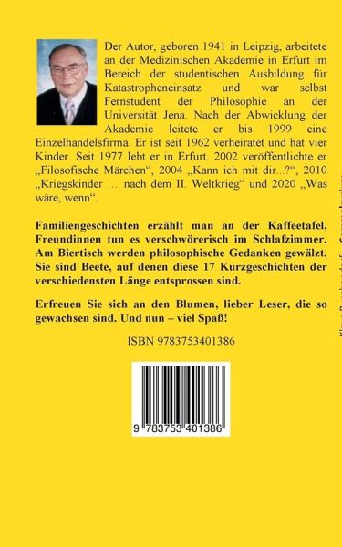 Familiengeschichten erzählt man an der Kaffeetafel beim Geburtstag der Cousine, beim Spaziergang nach dem Konfirmationsessen der Tochter oder der Jugendweihe vom Sohn des Schwagers, Freundinnen erzählen sie verschwörerisch im Schlafzimmer, während Onkel Paul die Gesellschaft mit Witzen unterhält. Auf der Terrasse spricht man "unter Männern" manchmal philosophisch und im Garten am Sandkasten wispern die Kleinsten: "Hast du gesehen, was Onkel Heiner mit der Tante Frida macht?" Briefe werden geschrieben. Sie sind oft so banal, die Erinnerungen, Sehnsüchte, "wahre Geschichten" - nur nicht für die Beteiligten. Man lauscht entpannt, lächelt höflich, hofft, dass der Andere zum Ende kommt - nichts Weltbewegendes, immer Gleiches scheint durch Räume zu wehen, gesättigt von Kaffeedunst und Zigaretenrauch und doch - ein Spiegel unserer Welt. Sie sind die Beete, denen diese 17 Kurzgeschichten der verschiedensten Länge entsprossen sind.Reißen wir die Geschichten von intriganten Mündern, kleben wir sie anderen Personen an, damit Onkel Paul nicht glaubt, er sei gemeint. Erleichtert lehnt er sich im Sessel zurück, hat seinen Spaß - und etwas Nachdenklichkeit bleibt übrig.So soll es sein, wenn Sie, lieber Leser, diese Geschichten vor sich haben. Und nun - viel Freude!
