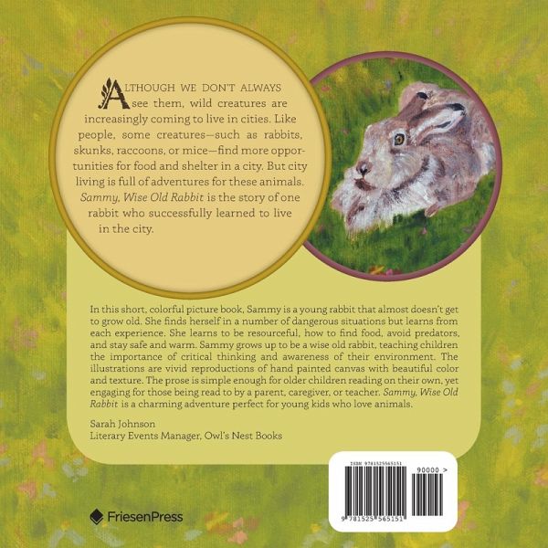 Although we don't always see them, wild creatures are increasingly coming to live in cities. Like people, some creatures-such as rabbits, skunks, raccoons, or mice-find more opportunities for food and shelter in a city. But city living is full of adventures for these animals. Sammy, Wise Old Rabbit is the story of one rabbit who successfully learned to live in the city.