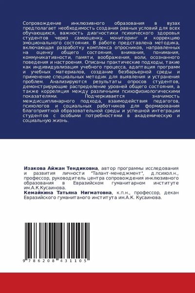 Soprowozhdenie inklüziwnogo obrazowaniq w wuzah predpolagaet neobhodimost' sozdaniq rawnyh uslowij dlq wseh obuchaüschihsq, wazhnost' diagnostiki psihicheskogo zdorow'q studentow cherez samoocenku, monitoring i korrekciü ämocional'nogo sostoqniq. V rabote predstawlena metodika, wklüchaüschaq razrabotku komplexa oprosnikow, naprawlennyh na ocenku obschego sostoqniq, wnimaniq, ponimaniq, kommunikatiwnosti, pamqti, woobrazheniq, woli, osoznannogo powedeniq i nastroeniq. Opisany prakticheskie podhody, takie kak indiwidualizaciq uchebnogo processa, adaptaciq programm i uchebnyh materialow, sozdanie bezbar'ernoj sredy i primenenie special'nyh metodik dlq wyqwleniq i ustraneniq problem. Analiziruütsq rezul'taty oprosow studentow, demonstriruüschie raspredelenie urownej obschego sostoqniq, a takzhe korrelqciq mezhdu razlichnymi psihofiziologicheskimi pokazatelqmi. Podcherkiwaetsq znachimost' mezhdisciplinarnogo podhoda, wzaimodejstwiq pedagogow, psihologow i social'nyh rabotnikow dlq formirowaniq blagopriqtnoj obrazowatel'noj sredy i uspeshnoj integracii studentow s osobymi potrebnostqmi w akademicheskuü i social'nuü zhizn'.