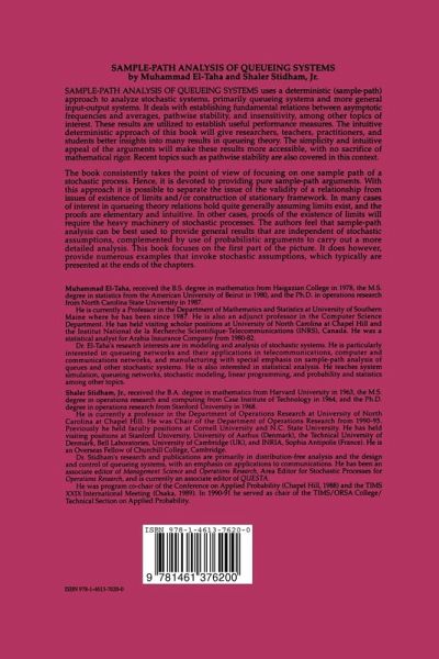 The book consistently takes the point of view of focusing on one sample path of a stochastic process. Hence, it is devoted to providing pure sample-path arguments. With this approach it is possible to separate the issue of the validity of a relationship from issues of existence of limits and/or construction of stationary framework. Generally, in many cases of interest in queueing theory, relations hold, assuming limits exist, and the proofs are elementary and intuitive. In other cases, proofs of the existence of limits will require the heavy machinery of stochastic processes. The authors feel that sample-path analysis can be best used to provide general results that are independent of stochastic assumptions, complemented by use of probabilistic arguments to carry out a more detailed analysis. This book focuses on the first part of the picture. It does however, provide numerous examples that invoke stochastic assumptions, which typically are presented at the ends of the chapters.