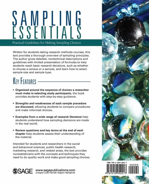 Written for students taking research methods courses, this text provides a thorough overview of sampling principles. The author gives detailed, nontechnical descriptions and guidelines with limited presentation of formulas to help students reach basic research decisions, such as whether to choose a census or a sample, as well as how to select sample size and sample type. Intended for students and researchers in the social and behavioral sciences, public health research, marketing research, and related areas, the text provides nonstatisticians with the concepts and techniques they need to do quality work and make good sampling choices.…mehr