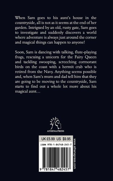 When Sam goes to his aunt's house in the countryside, all is not as it seems at the end of her garden. Intrigued by an old, rusty gate, Sam goes to investigate and suddenly discovers a world where adventure is always just around the corner and magical things can happen to anyone! Soon, Sam is dancing with talking, flute-playing frogs, rescuing a unicorn for the Fairy Queen and tackling swooping, screeching cormorant birds on the coast with a hermit crab who is retired from the Navy. Anything seems possible and, when Sam's mum and dad tell him that they are going to be moving to the countryside, Sam starts to find out a whole lot more about his magical aunt.