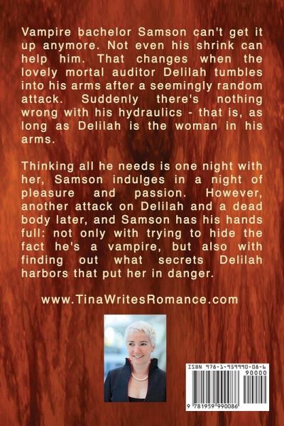LARGE PRINT EDITION Vampire bachelor Samson can't get it up anymore. Not even a shrink can help the owner of the successful security company Scanguards. That changes when the lovely mortal auditor Delilah tumbles into his arms after a seemingly random attack. Suddenly there's nothing wrong with his hydraulics-as long as Delilah is the woman in his arms. His scruples about taking Delilah to bed vanish when his shrink suggests it's the only way to cure his problem. Thinking all he needs is one night with her, Samson indulges in a night of pleasure and passion. However, another attack on Delilah and a dead body later, and Samson has his hands full: not only with trying to hide the fact he's a vampire, but also with finding out what secrets Delilah harbors that put her into harm's way. ¿¿ ¿¿ ¿¿ ¿¿ ¿¿Lara Adrian, New York Times Bestselling Author of the Midnight Breed series: "I'm addicted to Tina Folsom's books! The Scanguards® series is one of the hottest things to happen to vampire romance. If you love scorching, fast-paced reads, don't miss this thrilling series!" ABOUT THE SERIES The Scanguards Vampires series is full of fast-paced action, scorching love scenes, witty dialogue, and strong heroes and heroines. Vampire Samson Woodford lives in San Francisco and owns a security/bodyguard company, Scanguards, which employs both vampires and humans. And eventually some witches. Throw in a few immortal guardians and demons later in the series, and you'll get the drift! Each book can be read as a standalone and always centers around a new couple finding love, but the series is more enjoyable when read in order. Scanguards Vampires Book 1: Samson's Lovely Mortal Book 2: Amaury's Hellion Book 3: Gabriel's Mate Book 4: Yvette's Haven Book 5: Zane's Redemption Book 6: Quinn's Undying Rose Book 7: Oliver's Hunger Book 8: Thomas's Choice Book 8 1/2: Silent Bite (A Scanguards Wedding Novella) Book 9: Cain's Identity Book 10: Luther's Return Novella: Mortal Wish Book 11: Blake's Pursuit Novella 11 1/2: Fateful Reunion Book 12: John's Yearning Book 13: Ryder's Storm (Scanguards Hybrids #1) Book 14: Damian's Conquest (Scanguards Hybrids #2) Book 15: Grayson's Challenge (Scanguards Hybrids #3) Stealth Guardians Lover Uncloaked (#1) Master Unchained (#2) Warrior Unraveled (#3) Guardian Undone (#4) Immortal Unveiled (#5) Protector Unmatched (#6) Demon Unleashed (#7) The Scanguards Vampires series has it all: love at first sight, enemies to lovers, meet cute, instalove, alpha hero, fated mates, bodyguard, band of brothers, damsel in distress, woman in peril, beauty and the beast, hidden identity, soul mates, first love, virgins, tortured hero, age gap, second chance love, grieving lover, return from the dead, secret baby, playboy, kidnappings, friends to lovers, coming out, secret admirer, last to know, unrequited love, amnesia, royalty, forbidden love, identical twins, partners in fighting crime.
