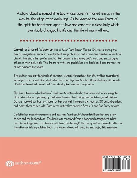 A story about a special little boy whose parents trained him up in the way he should go at an early age. As he learned the nine fruits of the spirit his heart was open to love and care for a class bully which eventually changed his life and the life of many others.
