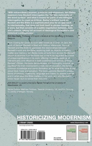 From Waiting for Godot to such later novels as Ill Seen, Ill Said, the work of Samuel Beckett is filled with Biblical references. Samuel Beckett and the Bible re-appraises the relationships between Beckett's work and the Bible, exploring both as objects of history, matter and memory. Iain Bailey ranges across the Beckett oeuvre to examine how the Bible has come to be regarded as a book of unique significance in his work, offering innovative readings of intertextuality and influence in both published and archival writings. Beckett's Bibles, the book demonstrates, are thoroughly material, as significant for their involvement in histories of education, the family, common knowledge and canon-formation as for what they have to say about God, hope and salvation. The book explores Beckett's uneasy forms of memory, materiality, language and history to assess how far and in what ways the Bible matters in his work, and why Beckett's voice 'harps, but no worse than Holy Writ.'