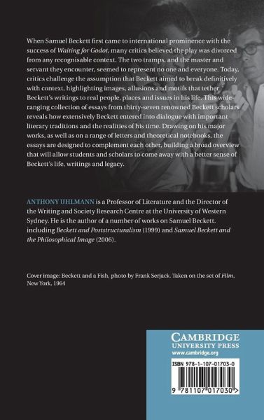 When Samuel Beckett first came to international prominence with the success of Waiting for Godot, many critics believed the play was divorced from any recognisable context. The two tramps, and the master and servant they encounter, seemed to represent no one and everyone. Today, critics challenge the assumption that Beckett aimed to break definitively with context, highlighting images, allusions and motifs that tether Beckett's writings to real people, places and issues in his life. This wide-ranging collection of essays from 37 renowned Beckett scholars reveals how extensively Beckett entered into dialogue with important literary traditions and the realities of his time. Drawing on his major works, as well as on a range of letters and theoretical notebooks, the essays are designed to complement each other, building a broad overview that will allow students and scholars to come away with a better sense of Beckett's life, writings and legacy.