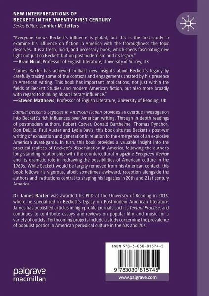 Samuel Beckett's Legacies in American Fiction provides an overdue investigation into Beckett's rich influences over American writing. Through in-depth readings of postmodern authors such as Robert Coover, Donald Barthelme, Thomas Pynchon, Don DeLillo, Paul Auster and Lydia Davis, this book situates Beckett's post-war writing of exhaustion and generation in relation to the emergence of an explosive American avant-garde. In turn, this study provides a valuable insight into the practical realities of Beckett's dissemination in America, following the author's long-standing relationship with the countercultural magazine Evergreen Review and its dramatic role in redrawing the possibilities of American culture in the 1960s. While Beckett would be largely removed from his American context, this book follows his vigorous, albeit sometimes awkward, reception alongside the authors and institutions central to shaping his legacies in 20th and 21st centuryAmerica.