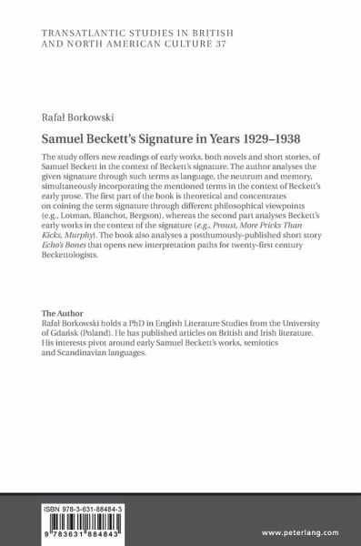 The study offers new readings of early works, both novels and short stories, of Samuel Beckett in the context of Beckett's signature. The author analyses the given signature through such terms as language, the neutrum and memory, simultaneously incorporating the mentioned terms in the context of Beckett's early prose. The first part of the book is theoretical and concentrates on coining the term signature through different philosophical viewpoints (e.g., Lotman, Blanchot, Bergson), whereas the second part analyses Beckett's early works in the context of the signature (e.g., Proust, More Pricks Than Kicks, Murphy). The book also analyses a posthumously-published short story Echo's Bones that opens new interpretation paths for twenty-first century Beckettologists.