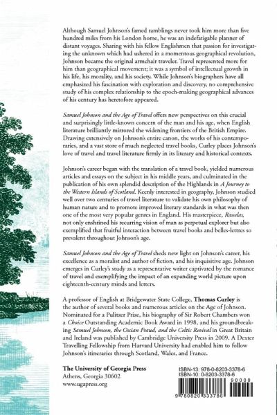 Although Samuel Johnson's famed ramblings never took him more than five hundred miles from his London home, he was an indefatigable planner of distant voyages. Sharing with his fellow Englishmen that passion for investigating the unknown which had ushered in a momentous geographical revolution, Johnson became the original armchair traveler. His writings proclaim a boundless curiosity about the globe and demonstrate a pervasive preoccupation with travel in every conceivable form. Travel represented more for him than geographical movement; it was a symbol of intellectual growth in his life, his morality, and his society. While Johnson's biographers have all emphasized his fascination with exploration and discovery, no comprehensive study of his complex relationship to the epoch-making geographical advances of his century has heretofore appeared. Thomas Curley's Samuel Johnson and the Age of Travel offers new perspectives on this crucial and surprisingly little-known concern of the man and his age, when English literature brilliantly mirrored the widening frontiers of the British Empire. Drawing extensively on Johnson's entire canon, the works of his contemporaries, and a vast store of much neglected travel books, Curley places Johnson's love of travel and travel literature firmly in its literary and historical contexts. Johnson's career began with the translation of a travel book, yielded numerous articles and essays on the subject in his middle years, and culminated in the publication of his own splendid description of the Highlands in A Journey to the Western Islands of Scotland. Keenly interested in geography, Johnson studied well over two centuries of travel literature to validate his own philosophy of human nature and to promote improved literary standards in what was then the second most popular genre in England. His masterpiece, Rasselas, not only enshrined his recurring vision of man as perpetual explorer but also exemplified that fruitful interaction between travel books and belles-lettres so prevalent throughout Johnson's age. Samuel Johnson and the Age of Travel sheds new light on Johnson's career ambitions, his talents in moral observation and literary creation, and his inquisitive age. Johnson emerges in Curley's study as a truly representative writer completely captivated by the romance of Georgian travel and illustrative of the cultural impact of an expanding world picture upon the minds and letter of eighteenth-century Englishmen.