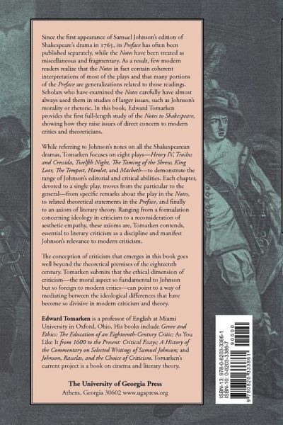 Since the first appearance of Samuel Johnson's edition of Shakespeare's drama in 1765, its Preface has often been published separately, while the Notes have been treated as miscellaneous and fragmentary. As a result, few modern readers realize that the Notes in fact contain coherent interpretations of most of the plays and that many portions of the Preface are generalizations related to those readings. Scholars who have examined the Notes carefully have almost always used them in studies of larger issues, such as Johnson's morality or rhetoric. In this book, Edward Tomarken provides the first full-length study of the Notes to Shakespeare, showing how they raise issues of direct concern to modern critics and theoreticians. While referring to Johnson's notes on all the Shakespearean dramas, Tomarken focuses on eight plays--Henry IV, Troilus and Cressida, Twelfth Night, The Taming of the Shrew, King Lear, The Tempest, Hamlet, and Macbeth--to demonstrate the range of Johnson's editorial and critical abilities. Each chapter, devoted to a single play, moves from the particular to the general-from specific remarks about the play in the Notes, to related theoretical statements in the Preface, and finally to an axiom of literary theory. Ranging from a formulation concerning ideology in criticism to a reconsideration of aesthetic empathy, these axioms are, Tomarken contends, essential to literary criticism as a discipline and manifest Johnson's relevance to moder