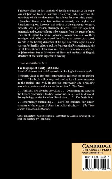 The first analysis of the life and thought of the writer Samuel Johnson from an historian's viewpoint.