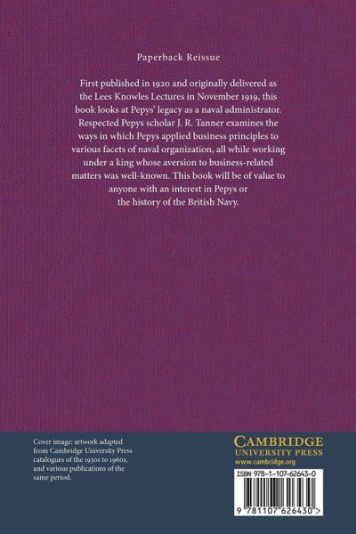First published in 1920 and originally delivered as the Lees Knowles Lectures in November 1919, this book looks at Pepys' legacy as a naval administrator. Respected Pepys scholar J. R. Tanner examines the ways in which Pepys applied business principles to various facets of naval organization, all while working under a king whose aversion to business-related matters was well known. This book will be of value to anyone with an interest in Pepys or the history of the British Navy.