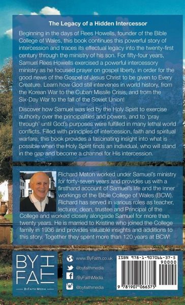 Updated in 2018. Samuel Rees Howells, A Life of Intercession: The Legacy of Prayer and Spiritual Warfare of an Intercessor by Richard A. Maton, Paul Backholer and Mathew Backholer. Hardback and paperback edtions have 39 black and white photos interspersed throughout the book. Rees Howells, a powerful intercessor, taught his son Samuel the principles of intercession and commissioned him some weeks before his death, stating, "Whatever you do, stand and maintain these intercessions." For the next fifty-four years, Samuel Rees Howells exercised a powerful intercessory ministry as he focused prayer on gospel liberty, in order for the good news of the Gospel of Jesus Christ to be given to every creature. With the mantle of intercession weighing heavily upon him, Samuel spent decades participating with others in their own countries, in profound spiritual struggles that shook world events and shaped history for God's glory! Discover how Samuel was led by the Holy Spirit to exercise authority over the principalities and powers, and to 'pray through' until God's purposes were fulfilled in many lethal world conflicts. Learn how God still intervenes in world history, from the Korean War to the Cuban Missile Crisis, and from the Six-Day War to the fall of the Soviet Union! Beginning in the days of Rees Howells, this book continues this powerful story of intercession and traces its effectual legacy into the twenty-first century. Filled with principles of intercession, faith and spiritual warfare, this book provides a fascinating insight into what is possible when the Holy Spirit finds an individual, who will stand in the gap and become a channel for His intercession. Ezekiel 22:30, Romans 8:26-27, Ephesians 6:12. Richard A. Maton worked under Samuel's ministry for forty-seven years and provides us with an eyewitness account of Samuel's life of intercession. Richard is married to Kristine who joined Rees Howells' Bible College in 1936 and prayed alongside him. Together Richard and Kristine spent more than 120 years at the College!