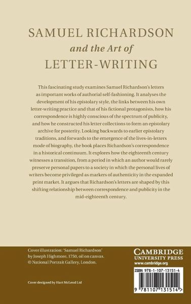 This fascinating study examines Samuel Richardson's letters as important works of authorial self-fashioning. It analyses the development of his epistolary style; the links between his own letter-writing practice and that of his fictional protagonists; how his correspondence is highly conscious of the spectrum of publicity; and how he constructed his letter collections to form an epistolary archive for posterity. Looking backwards to earlier epistolary traditions, and forwards, to the emergence of the lives-in-letters mode of biography, the book places Richardson's correspondence in a historical continuum. It explores how the eighteenth century witnesses a transition, from a period in which an author would rarely preserve personal papers to a society in which the personal lives of writers become privileged as markers of authenticity in the expanded print market. It argues that Richardson's letters are shaped by this shifting relationship between correspondence and publicity in the mid-eighteenth century.