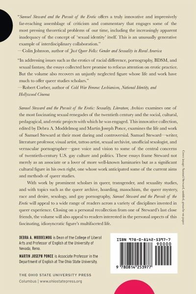 Samuel Steward and the Pursuit of the Erotic: Sexuality, Literature, Archives examines one of the most fascinating sexual renegades of the twentieth century and the social, cultural, pedagogical, and erotic projects with which he was engaged. This innovative collection, edited by Debra A. Moddelmog and Martin Joseph Ponce, examines the life and work of Samuel Steward at their most daring and controversial. Samuel Steward-writer, literature professor, visual artist, tattoo artist, sexual archivist, unofficial sexologist, and vernacular pornographer-gave voice and vision to some of the central concerns of twentieth-century U.S. gay culture and politics. These essays frame Steward not merely as an associate or a lover of more well-known luminaries but as a significant cultural figure in his own right, one whose work anticipated some of the current aims and methods of queer studies. With work by prominent scholars in queer, transgender, and sexuality studies, and with topics such as the queer archive, hoarding, masochism, the queer mystery, race and desire, sexology, and gay pornography, Samuel Steward and the Pursuit of the Erotic will appeal to a wide range of readers across a variety of disciplines invested in queer experience. Closing on a personal recollection from one of Steward's last close friends, the volume will also appeal to readers interested in the personal aspects of this fascinating, idiosyncratic figure's multifaceted life.