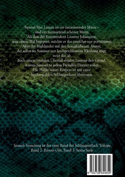 Samuel Mac Laman ist ein faszinierender Mann - und ein faszinierend schöner Mann. Als der Kunststudent Laurens Johannson ihm zum ersten Mal begegnet, möchte er ihn zunächst nur porträtieren. Aber der Highlander mit den honigfarbenen Augen, der selbst im Sommer nur hochgeschlossene Kleidung trägt, weist ihn ab. Nach einem brutalen Überfall erfährt Laurens den Grund, warum Samuel zu jedem Fremden Distanz wahrt. Die Hälfte seines Körpers ist mit einer hochsensiblen Schlangenhaut überzogen.