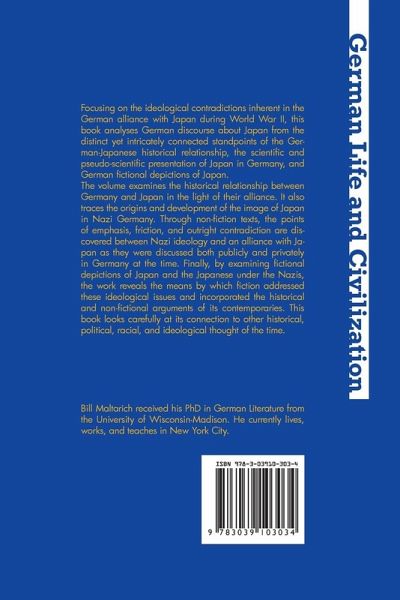 The volume examines the historical relationship between Germany and Japan in the light of their alliance. It also traces the origins and development of the image of Japan in Nazi Germany. Through non-fiction texts, the points of emphasis, friction, and outright contradiction are discovered between Nazi ideology and an alliance with Japan as they were discussed both publicly and privately in Germany at the time. Finally, by examining fictional depictions of Japan and the Japanese under the Nazis, the work reveals the means by which fiction addressed these ideological issues and incorporated the historical and non-fictional arguments of its contemporaries. This book looks carefully at its connection to other historical, political, racial, and ideological thought of the time.