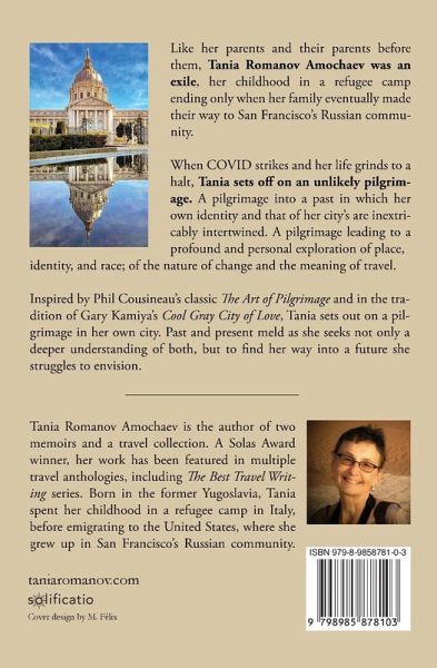 Like her parents and their parents before them, Tania Romanov Amochaev was an exile, her childhood in a refugee camp ending only when her family eventually made their way to San Francisco's Russian community. Nearly seventy years later Tania and her city have endured massive change. Tania has gone from penniless refugee to one of the first women to lead a high-tech company to acclaimed author and world traveler. When COVID strikes and her life grinds to a halt, Tania Romanov sets off on an unlikely pilgrimage. A pilgrimage into a past in which her own identity and that of her city's are inextricably intertwined. A pilgrimage leading to a profound and personal exploration of place, identity, and race; of the nature of change and the meaning of travel. Inspired by Phil Cousineau's classic The Art of Pilgrimage and in the tradition of Gary Kamiya's Cool Gray City of Love, Tania sets out on a pilgrimage in her own city. Past and present meld as she seeks not only a deeper understanding of both, but to find her way into a future she struggles to envision.