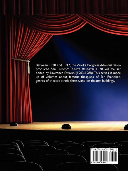 Between 1938 and 1942, the Works Progress Administration produced San Francisco Theatre Research, a 20 volume set edited by Lawrence Estavan (1903-1988). This series is made up of volumes about famous thespians of San Francisco, genres of theater, ethnic theate, and on theater buildings.