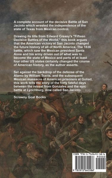 A complete account of the decisive Battle of San Jacinto which wrested the independence of the state of Texas from Mexican control. Drawing its title from Edward Creasy's "Fifteen Decisive Battles of the World," this book argues that the American victory at San Jacinto changed the future history of all of North America. The 1836 battle, which saw the Mexican president Santa Anna and his army driven out of what was to become the state of Mexico and parts of at least four other US states certainly changed the course of American history, as the author asserts. Set against the backdrop of the defense of the Alamo by William Travis, and the subsequent Mexican massacre of American prisoners at Goliad, this work tells the story of the forty fateful days between the retreat from Gonzales and the epic battle at Lynchburg, now called San Jacinto. "Had the Mexican Commander consolidated his forces, the battle of San Jacinto could not have been won by the Patriot Army. Had he carefully selected his camp site and kept a diligent watch, the thin line of seven hundred and twenty odd infantry which surprised his camp in the mid-afternoon could not have reached the crest of the hill . . . Had he won, the Texas settlements would have been wiped out and Mexican supremacy would have been re-established north and east of the Rio Grande. The Anti-Slavery sentiment in the northern States was so opposed to the acquisition of more territory in which the spread of slavery was feared, that these States would have been allies of Mexico against further Southern aggression." This new edition has been completely reset, contains the entire text and all 41 original illustrations. In addition, it contains two new appendices providing a Mexican account of the battle, and of an eye-witness account of the massacre at Goliad which preceded the battle.