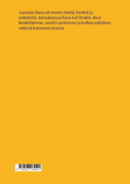 Jumalan Sana oli ennen meitä, henkiä ja enkeleitä. Jeesuksessa Sana tuli lihaksi. Asui keskellämme, sovitti syntimme ja kulkee edelleen veljenä kansansa seassa.