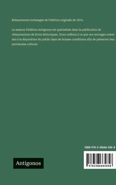 Réimpression inchangée de l'édition originale de 1874. La maison d'édition Antigonos est spécialisée dans la publication de réimpressions de livres historiques. Nous veillons à ce que ces ouvrages soient mis à la disposition du public dans de bonnes conditions afin de préserver leur patrimoine culturel.