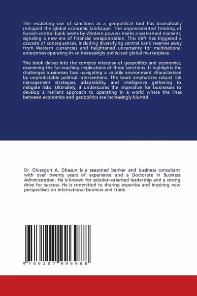 The escalating use of sanctions as a geopolitical tool has dramatically reshaped the global economic landscape. The unprecedented freezing of Russia's central bank assets by Western powers marks a watershed moment, signaling a new era of financial weaponization. This shift has triggered a cascade of consequences, including diversifying central bank reserves away from Western currencies and heightened uncertainty for multinational enterprises operating in an increasingly politicized global marketplace.The book delves into the complex interplay of geopolitics and economics, examining the far-reaching implications of these sanctions. It highlights the challenges businesses face navigating a volatile environment characterized by unpredictable political interventions. The book emphasizes robust risk management strategies, adaptability, and intelligence gathering to mitigate risks. Ultimately, it underscores the imperative for businesses to develop a resilient approach to operating in a world where the lines between economics and geopolitics are increasingly blurred.