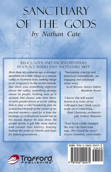 More than six centuries ago a stranger stumbled on a village in a remote valley in Northern Italy, seeking refuge from vengeance in the world outside. But there was something different about the valley, something strange about its people. Nothing was as it seemed. Did chance take him there, or were greater forces at work, calling him to play a role? Guided by fate, he would find himself at the center of an ancient mystery--and for a time the heritage of civilizations would rest in his hands. Before he was done, he would devise a gift like none before and vanish into history, leaving behind the seeds of rebirth and hope for future generations... Sanctuary of the Gods is vividly told, bringing history to life for its readers. The main story takes place at the dawn of the Renaissance, when European civilization was beginning its painful rise back towards the heights it had achieved in the days of Greece and Rome. There are also three detailed flashbacks to earlier periods: -A similar time more than 2,000 years before, when Greek civilization first began -The high point of Greek civilization in the age of Alexander The Great -Rome's decline, in the years following the Empire's conversion to Christianity. Sanctuary of the Gods is a story of survival against all odds, of human triumph over death and annihilation. It shows how a tiny village in Northern Italy became the last secret sanctuary of the old pagan religion, surviving through nine hundred years in hiding only to perish in the Black Death that swept Europe in 1348, and how, in those dark and terrifying days, a handful of survivors created the Tarot cards so that the heart of their religion would not perish with the sanctuary, but would survive in a hostile world, its origins forgotten, until the time was right for its rediscovery. For readers who are intrigued by the story and want to get to the heart of it, to discover the truth behind the things they've read, an appendix is provided. There, in 120 pages complemented by numerous illustrations, what at first seems too incredible to be anything but fiction is transformed by the evidence into compelling fact. Sanctuary is beautifully written with a clarity that brings the past to life and holds the reader's interest from beginning to end. For a Pagan or Tarot enthusiast, or for lovers of historical fiction, its appeal is apparent. But the story is powerful, and even readers who have never been interested in these subjects will find the book hard to put down. It gains the readers's attention because the characters and scenes described are lively and interesting, and because its vision is fresh and new, entirely unexpected. Be prepared for some surprises: the view from the Sanctuary is not like anything you have ever seen before...