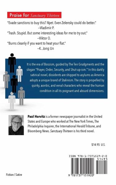 It is the era of Bossism, guided by The Ten Grudgments and the slogan "Prayer, Order, Security, and Shut-up-ism." In this darkly satirical novel, dissidents are shipped to asylums as America adopts a unique brand of Stalinism. The story is propelled by quirky, acerbic, and venal characters who reveal the human condition in all its poignant and absurd dimensions.