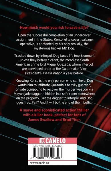 A locked vault. A deadly prize within. Upon the successful completion of a risky, undercover assignment in the States, Korso, elite covert salvage operative, is contacted by his only real ally, the mysterious hacker M. D. Dog. Tracked down by Interpol's cybercrime unit, Dog faces life imprisonment unless they betray a client, the merciless South American crime lord Miguel Quezada, whom Interpol are convinced ordered the Guatemalan Vice President's assassination a year before. Knowing Korso is the only person who can help, Dog wants him to infiltrate Quezada's heavily-guarded private compound to recover the murder weapon - a Mayan jade dagger - hidden in a safe room somewhere on his property. Get the dagger to Interpol, and Dog goes free. Fail? And it will be the end of them both... A suave and sophisticated action thriller with a killer hook, perfect for fans of Lee Child, James Swallow and Adam Hamdy.