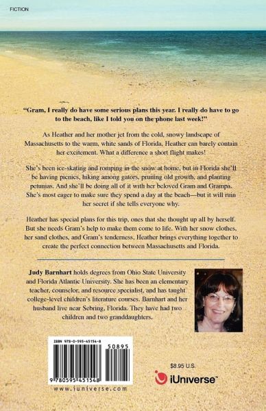 "Gram, I really do have some serious plans this year. I really do have to go to the beach, like I told you on the phone last week!" As Heather and her mother jet from the cold, snowy landscape of Massachusetts to the warm, white sands of Florida, Heather can barely contain her excitement. What a difference a short flight makes! She's been ice-skating and romping in the snow at home, but in Florida she'll be having picnics, hiking among gators, pruning old growth, and planting petunias. And she'll be doing all of it with her beloved Gram and Grampa. She's most eager to make sure they spend a day at the beach-but it will ruin her secret if she tells everyone why. Heather has special plans for this trip, ones that she thought up all by herself. But she needs Gram's help to make them come to life. With her snow clothes, her sand clothes, and Gram's tenderness, Heather brings everything together to create the perfect connection between Massachusetts and Florida.