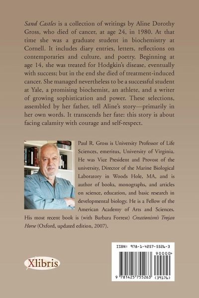 Sand Castles: a collection of writings by Aline Dorothy Gross, who died of cancer, at age 24, in 1980. At that time she was a graduate student in biochemistry at Cornell. It includes diary entries, letters, reflections on contemporaries and culture, and poetry. Beginning at age 14, she was treated for Hodgkin's disease, eventually with success; but in the end she died of treatment-induced cancer. Despite the catastrophe, she managed to become an honor student at Yale, a promising biochemist, an athlete, and a writer of growing sophistication and power. These selections, assembled by her father, tell the story-primarily in her own eloquent words. It transcends the fate of one young woman: this story is about facing calamity with courage, wit, self-respect, and intelligence.