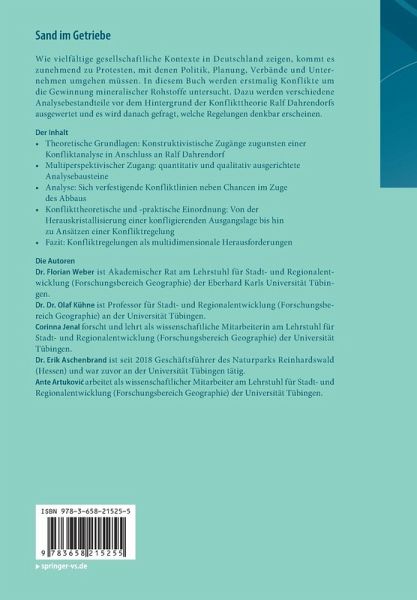 Wie vielfältige gesellschaftliche Kontexte in Deutschland zeigen, kommt es zunehmend zu Protesten, mit denen Politik, Planung, Verbände und Unternehmen umgehen müssen. In diesem Buch werden erstmalig Konflikte um die Gewinnung mineralischer Rohstoffe untersucht. Dazu werden verschiedene Analysebestandteile vor dem Hintergrund der Konflikttheorie Ralf Dahrendorfs ausgewertet und es wird danach gefragt, welche Regelungen denkbar erscheinen.