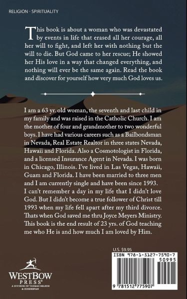 This book is about a woman who was devastated by events in life that erased all her courage, all her will to fight, and left her with nothing but the will to die. But God came to her rescue; He showed her His love in a way that changed everything, and nothing will ever be the same again. Read the book and discover for yourself how very much God loves us.
